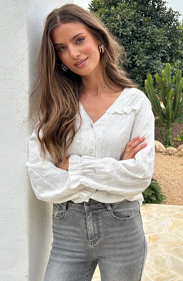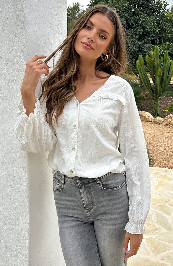 • Perfecte pasvorm – De blouse is zorgvuldig ontworpen om je figuur subtiel te accentueren, met een snit die zowel flatterend als comfortabel is.
