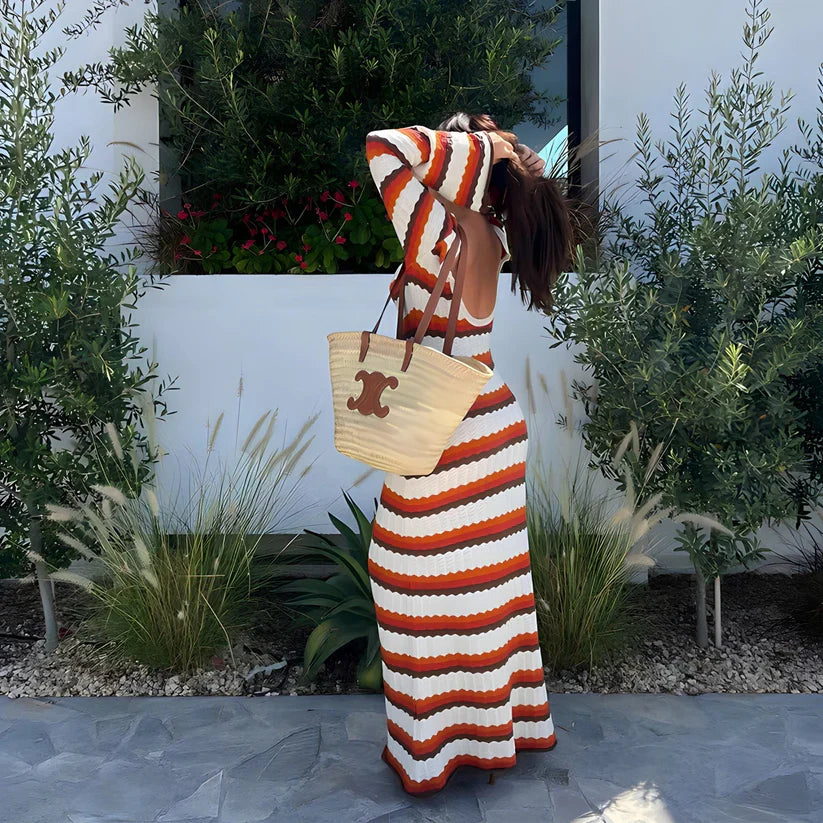De Gebreide Maxi Streepjurk is de perfecte mix van comfort en stijl. Gemaakt van een zachte, rekbare stof die moeiteloos met je meebeweegt en toch haar vorm behoudt. De klassieke streepprint en vrouwelijke, aangesloten pasvorm zorgen voor een tijdloze look die je bij elke gelegenheid kunt dragen.